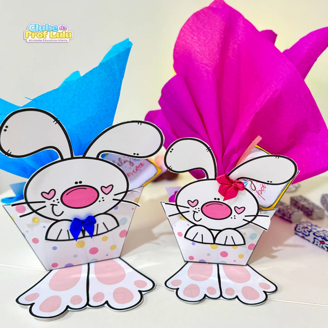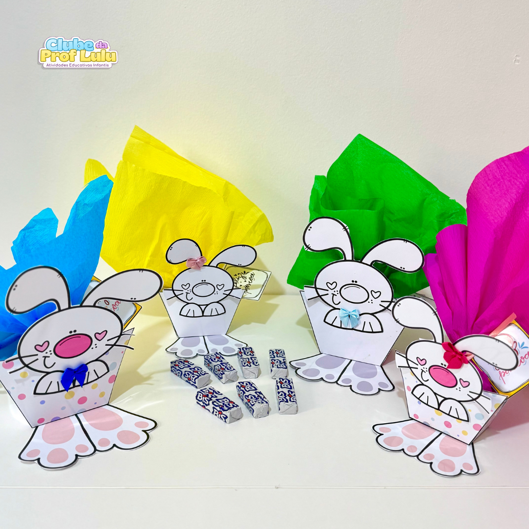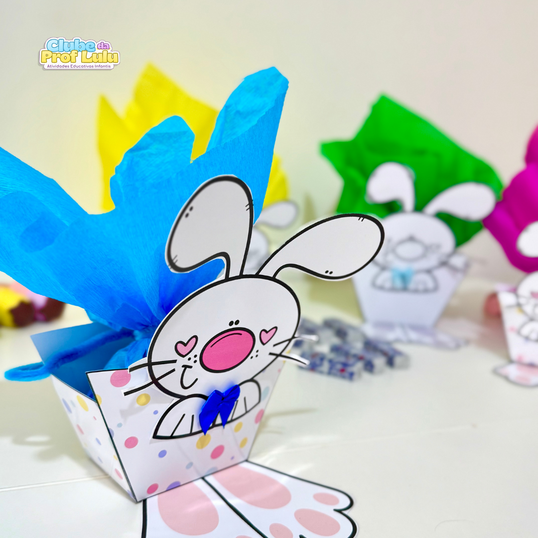 Caixinhas para lembrancinha de Páscoa tema Coelhinho, para turmas da Educação Infantil.