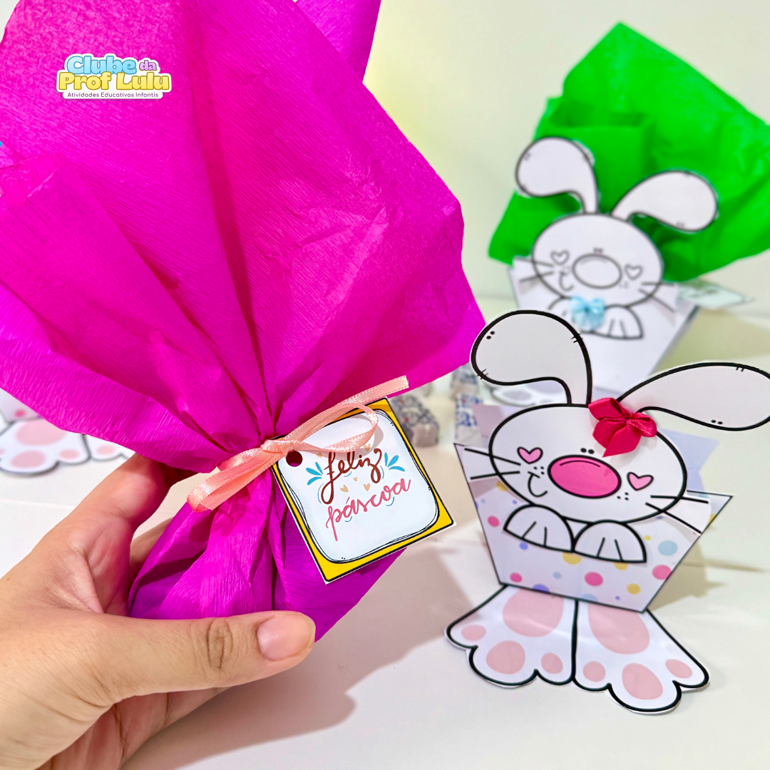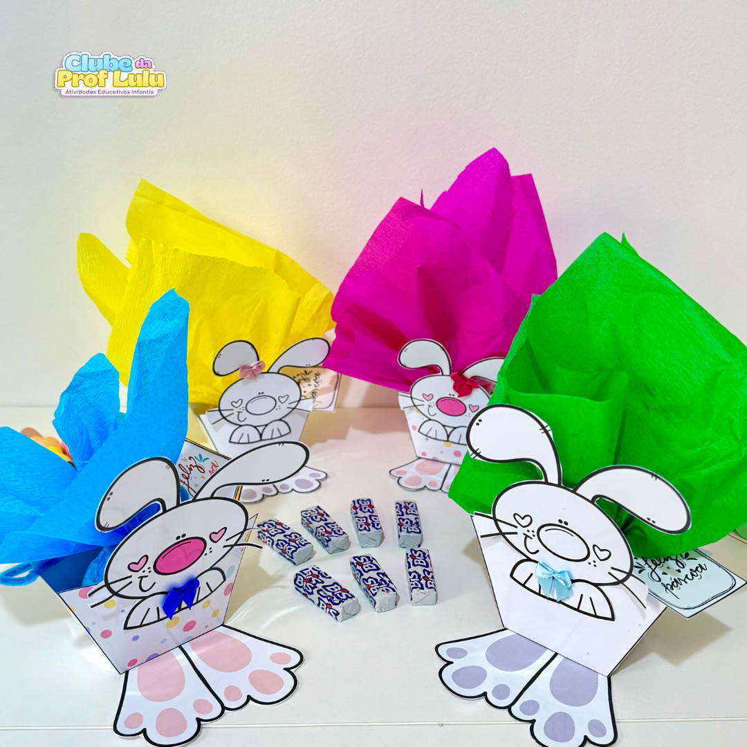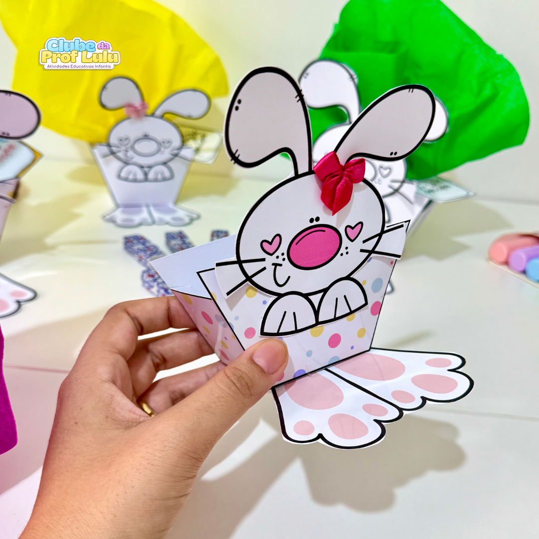 Caixinhas para lembrancinha de Páscoa tema Coelhinho, para turmas da Educação Infantil.