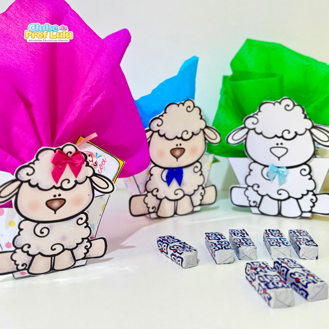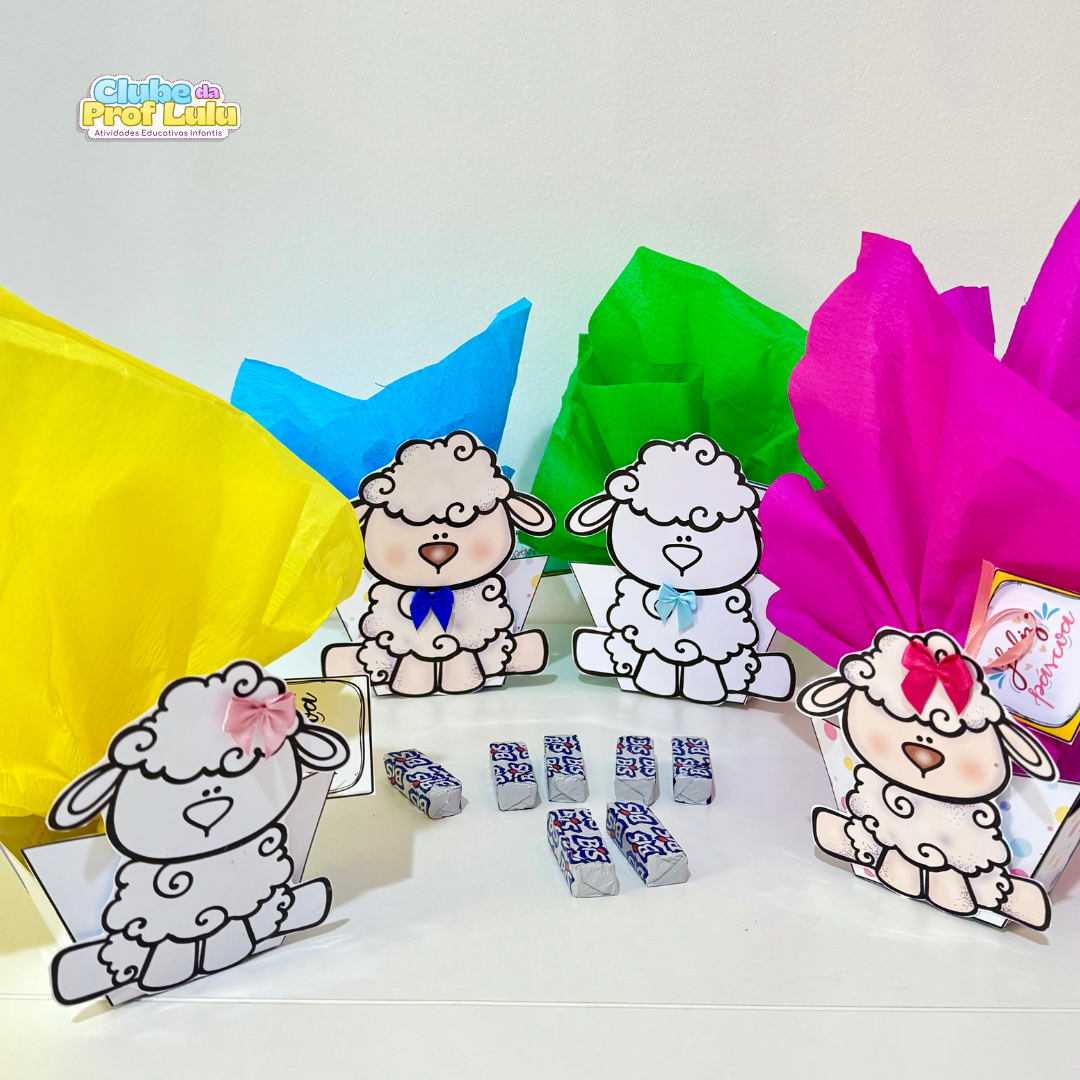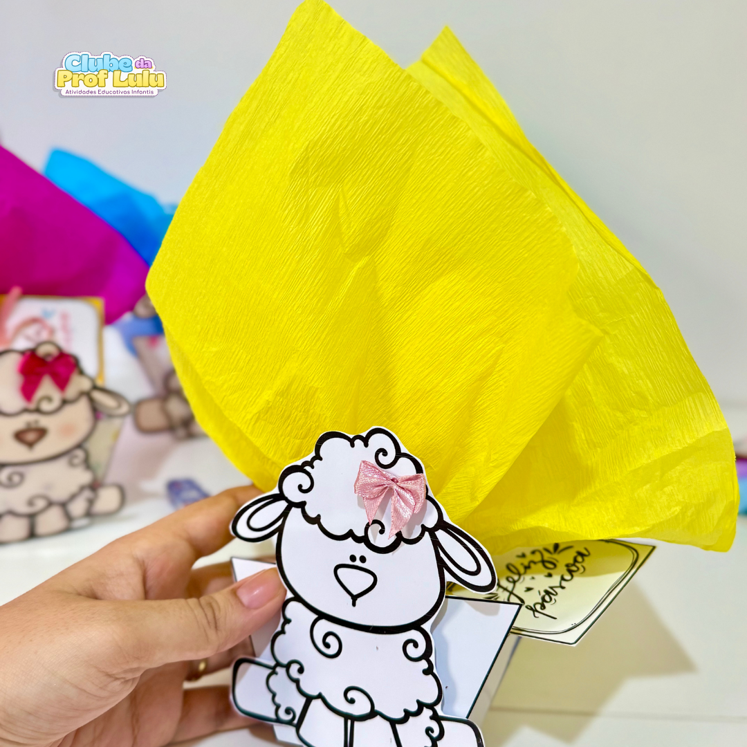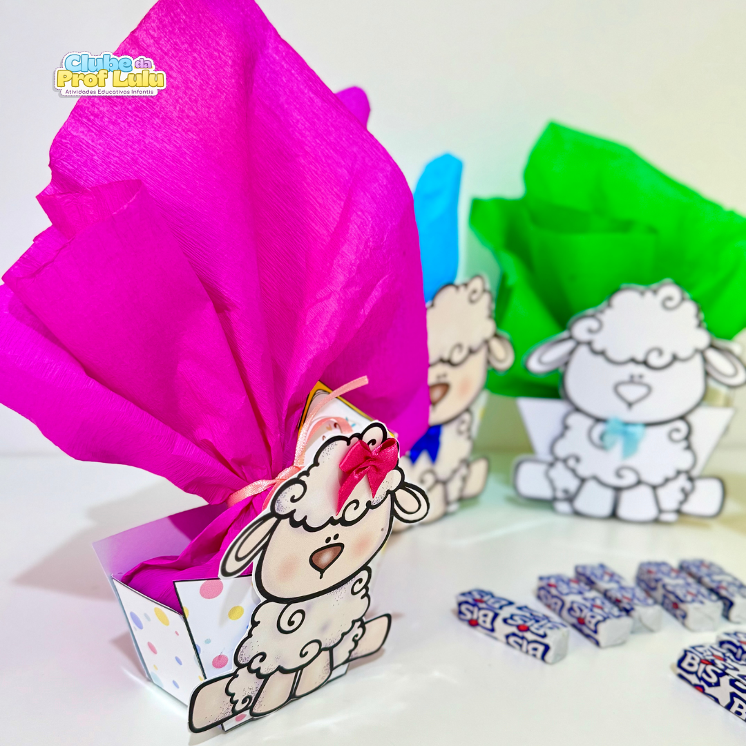Caixinhas para lembrancinha de Páscoa tema Cordeirinho para turmas da Educação Infantil.