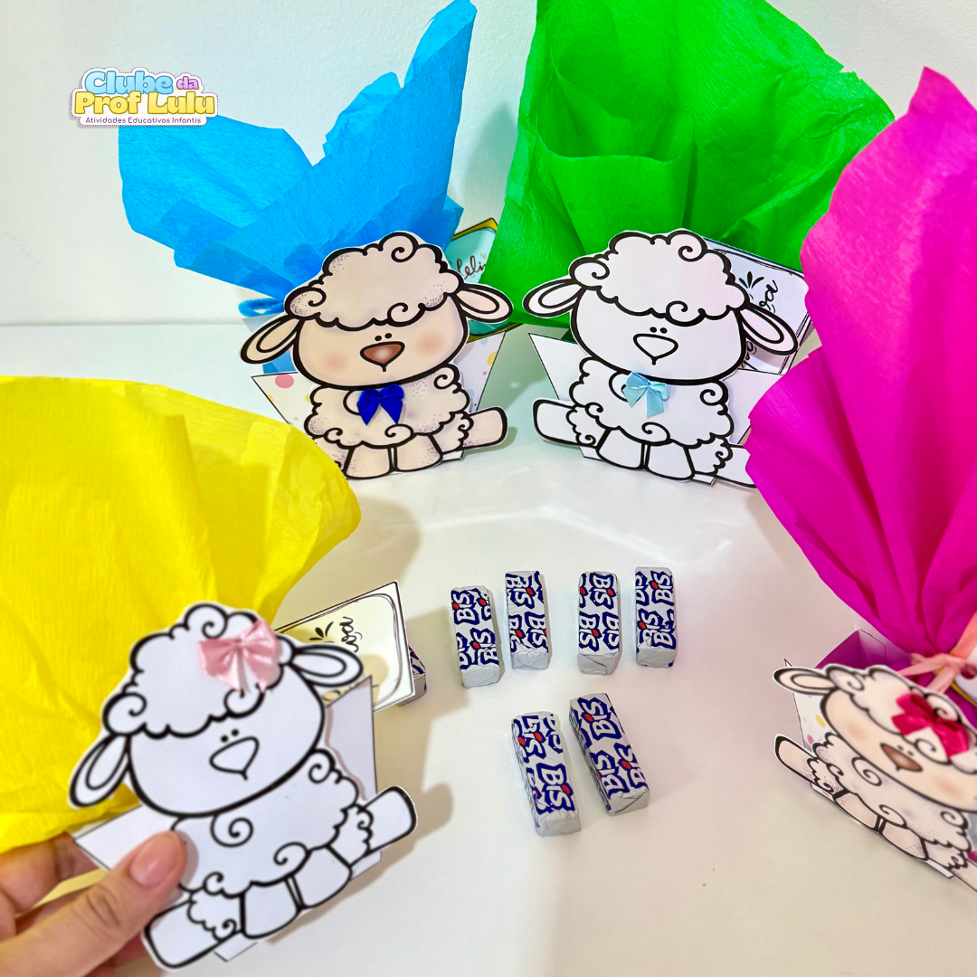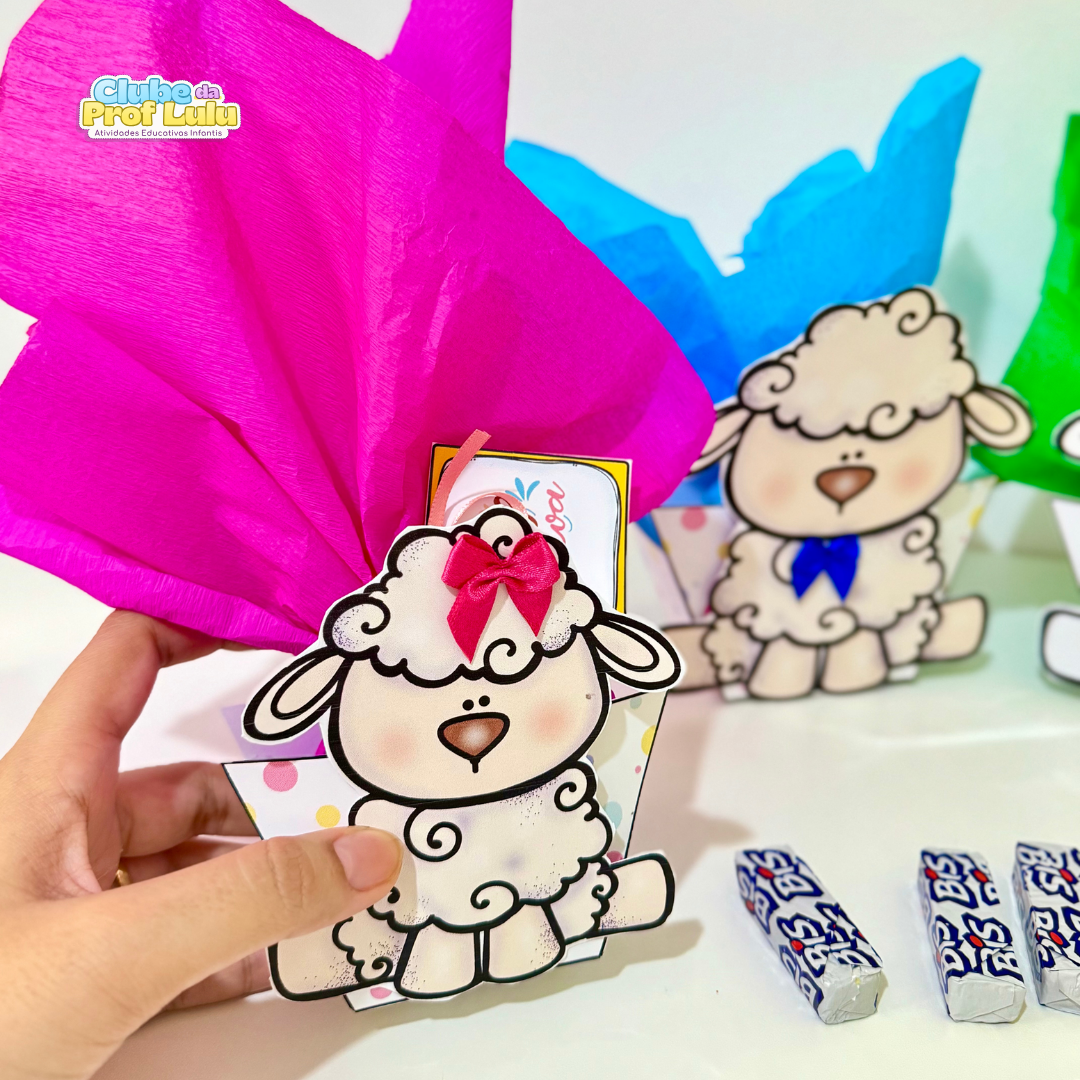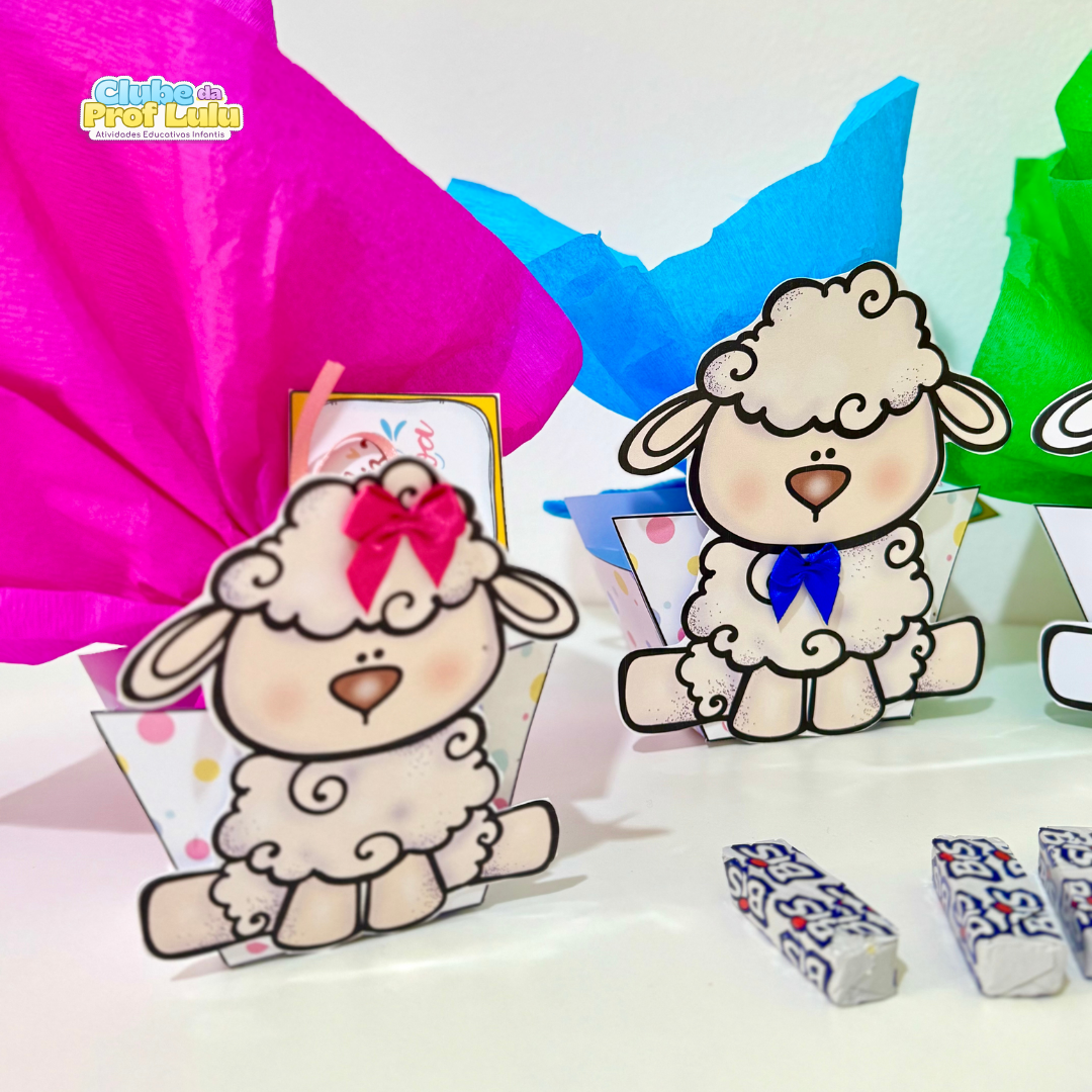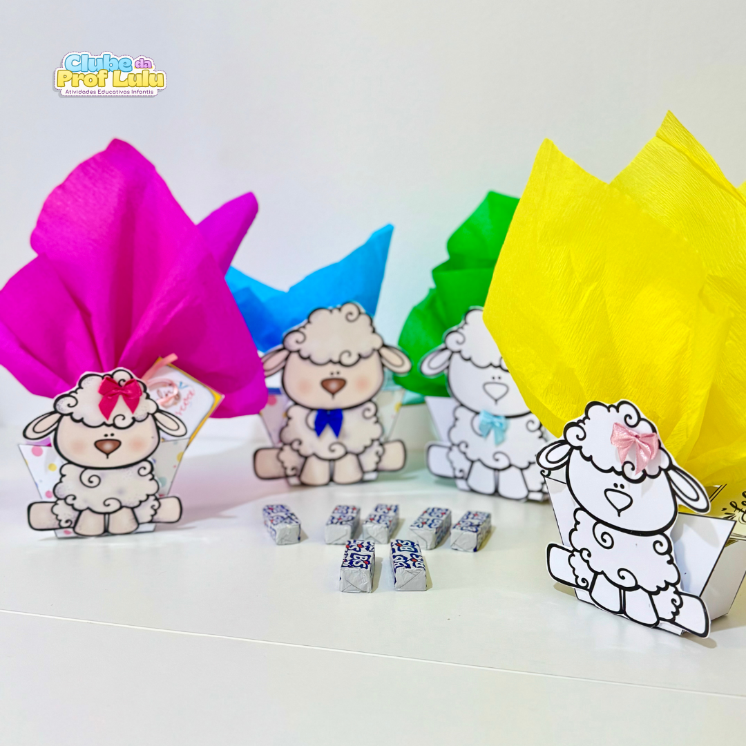 Caixinhas para lembrancinha de Páscoa tema Cordeirinho para turmas da Educação Infantil.