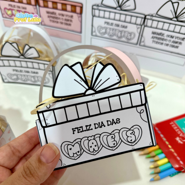 Cestinha para Lembrancinha Dia das Mães para trabalhar o tema com turmas da Educação Infantil. O material vai nas versões: Colorido Para Colorir e acompanha vídeo tutorial de montagem.