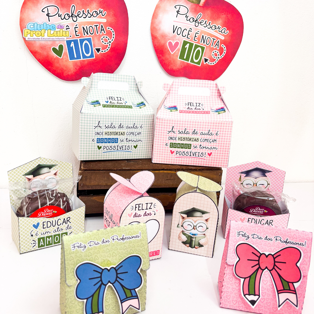 O Kit de Lembrancinhas para Professores oferece diversas opções de caixinhas criativas e modelos prontos pensados para tornar a homenagem simples e emocionante, cada peça é fácil de montar e acompanha um tutorial passo a passo para você não perder tempo, permitindo personalizar a entrega com detalhes cheios de afeto; o conjunto é perfeito para escolas, eventos ou lembranças individuais no Dia dos Professores (18 páginas).