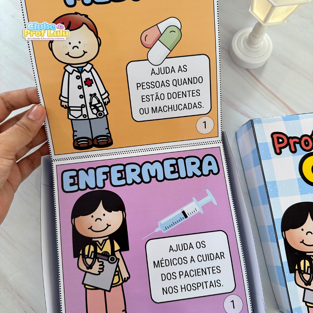 Esse recurso inclui diversas profissões ilustradas e descrições de como esses profissionais contribuem para a sociedade. O arquivo vai em PDF pronto para impressão, e também inclui vídeo tutorial de montagem. Recurso lindo que irá encantar seus alunos e trabalhar diversos conceitos importantes para essa faixa etária.
