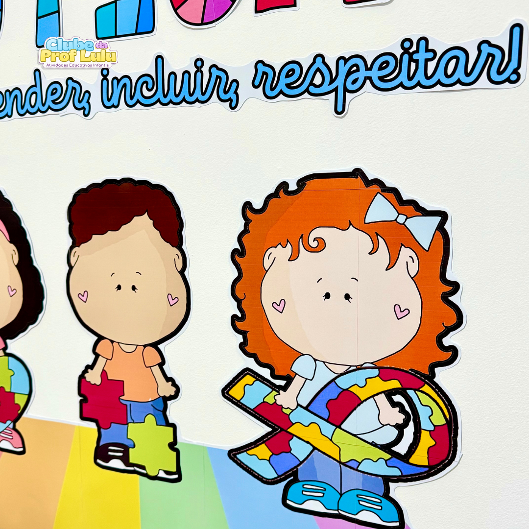 Painel tema Dia Nacional de Conscientização do Autismo para ser utilizado com turmas da Educação Infantil e séries iniciais do Ensino Fundamental.